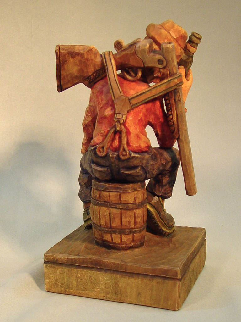 KZ074 – Mountain Man in Bark by Regie Grey, Signed, 9″ Tall